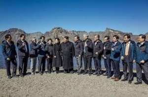 대통령과 김정은과 정동영 대표 백두산 천지에서